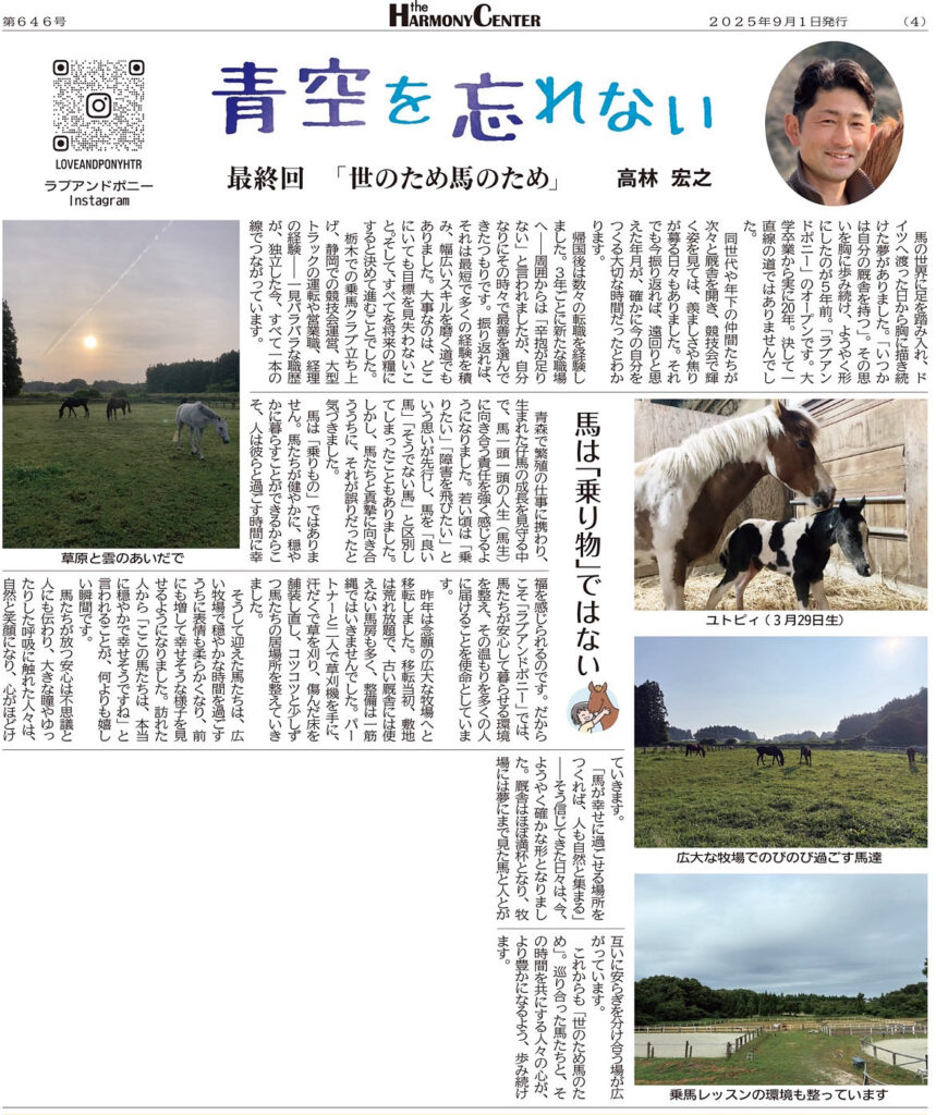 代表の高林が幼少期に通っていたハーモニィセンターの機関誌にて、コラムを掲載して頂いてます。